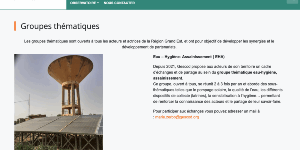 Gescod anime quatre groupes thématiques ouverts aux acteurs du Grand Est : Eau-Hygiène-Assainissement, Agriculture durable, Éducation et Égalité femmes-hommes. Réunis 2 à 3 fois par an, ces espaces favorisent échanges, partenariats et partages de savoir-faire autour de l’ODD6, ODD2, ODD4 et de l’approche Genre. Coanimés avec des partenaires spécialisés, ils renforcent les synergies régionales et accompagnent l’intégration de pratiques durables et inclusives dans les projets internationaux.