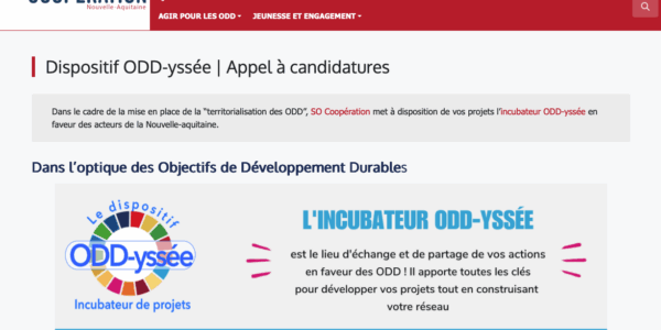 L’Incubateur ODD-yssée, en Nouvelle-Aquitaine, accompagne les porteurs de projets innovants contribuant aux Objectifs de Développement Durable, du local à l’international. Ouvert à un large panel d’acteurs (associations, établissements scolaires, collectifs, entreprises…), il offre expertise, accompagnement méthodologique, soutien à la recherche de financements et valorisation des actions. Objectif : renforcer et multiplier les initiatives en faveur des ODD, en impliquant divers publics et acteurs du territoire.